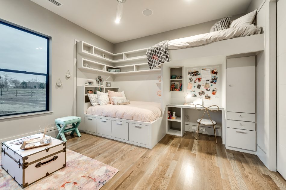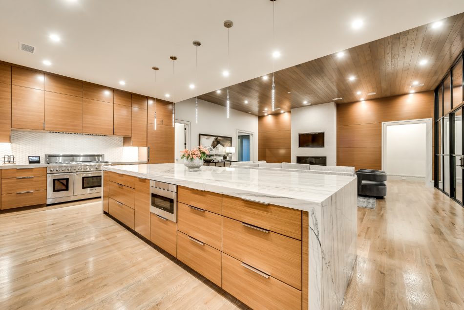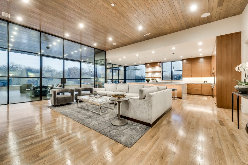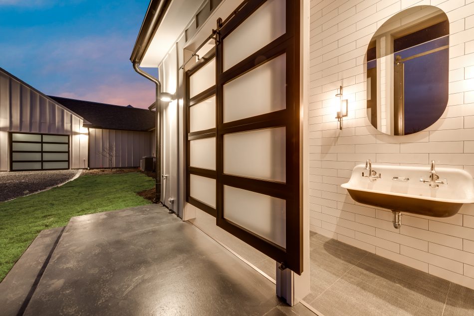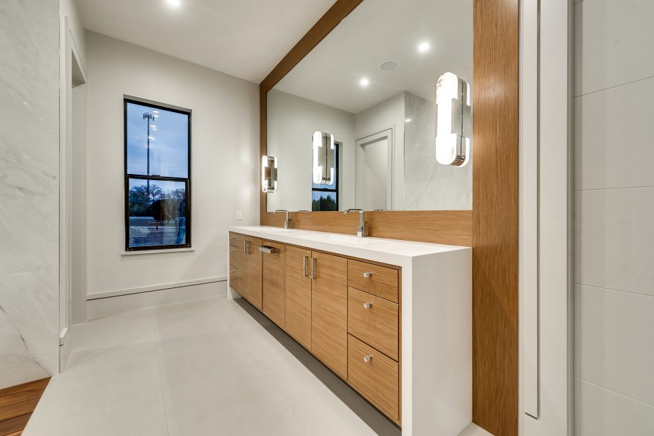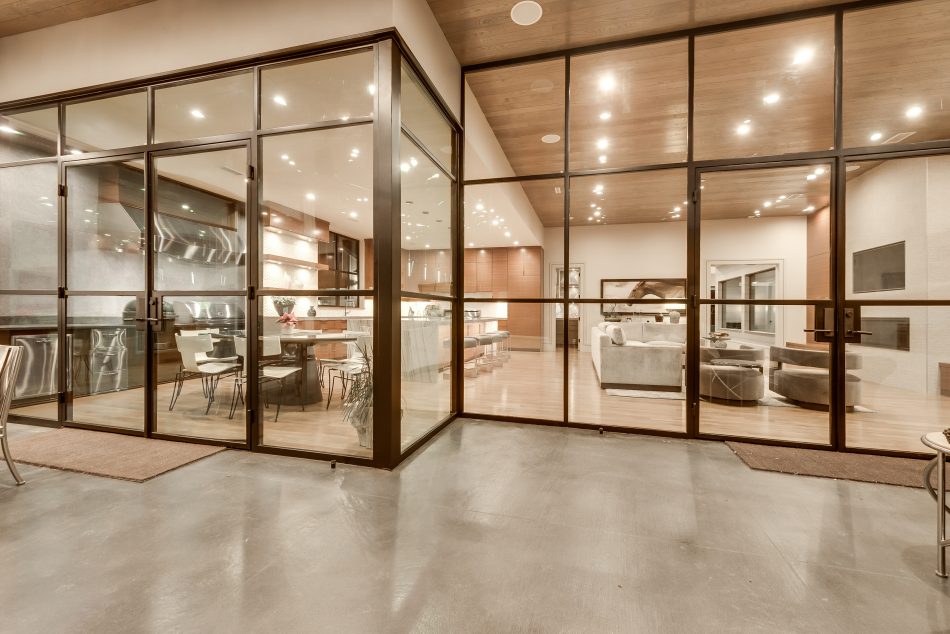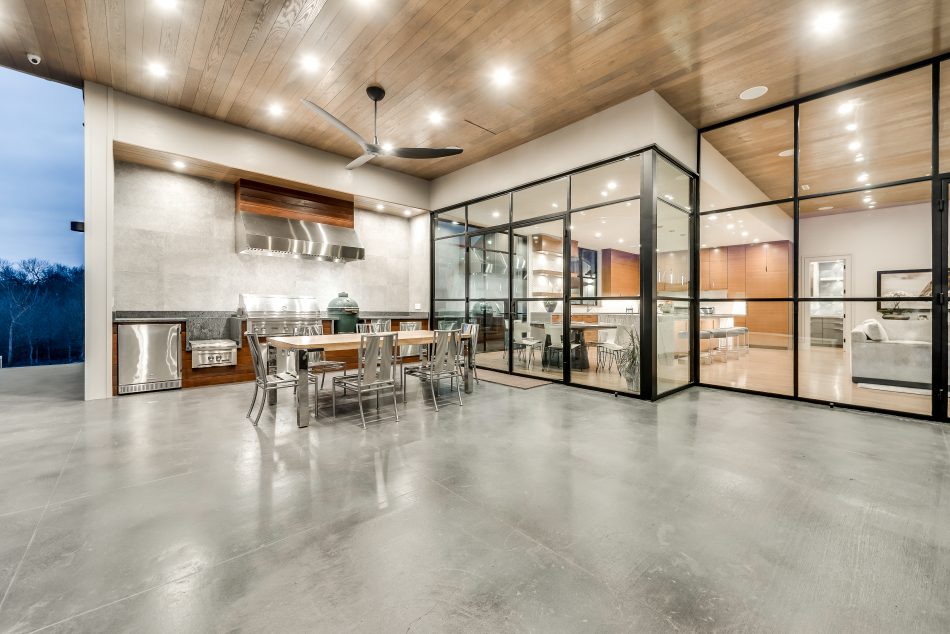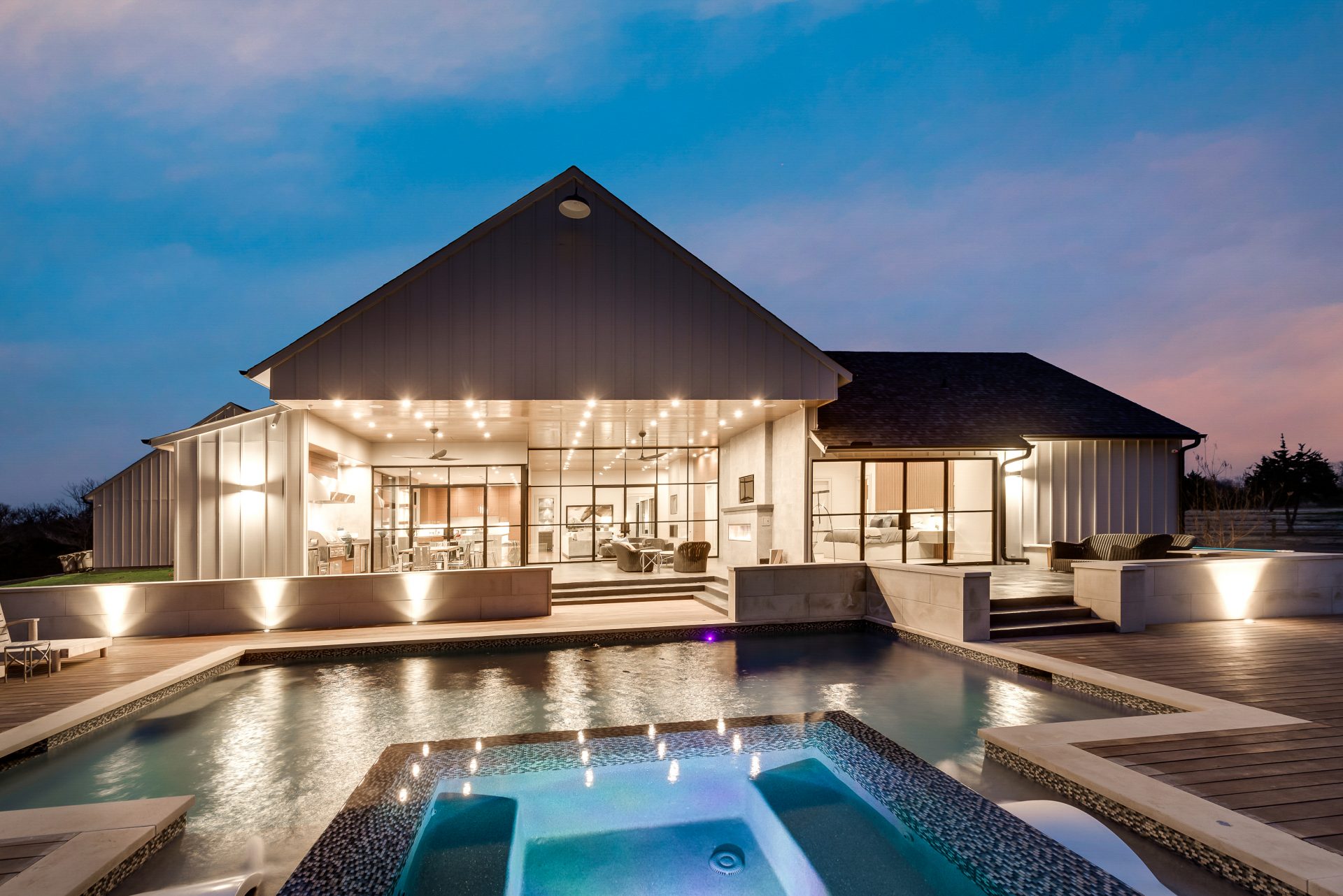 This beautiful modern farmhouse combines contemporary design with cozy farmhouse features to create a beautiful home. Located in Rockwall, this house features upgrades throughout and many unique details such as wallpaper, stained wood ceilings, custom built barn doors, custom trim work, beautiful wood cabinets and much more. With floor to ceiling glass it allows wonderful views to the outdoor space and pool.